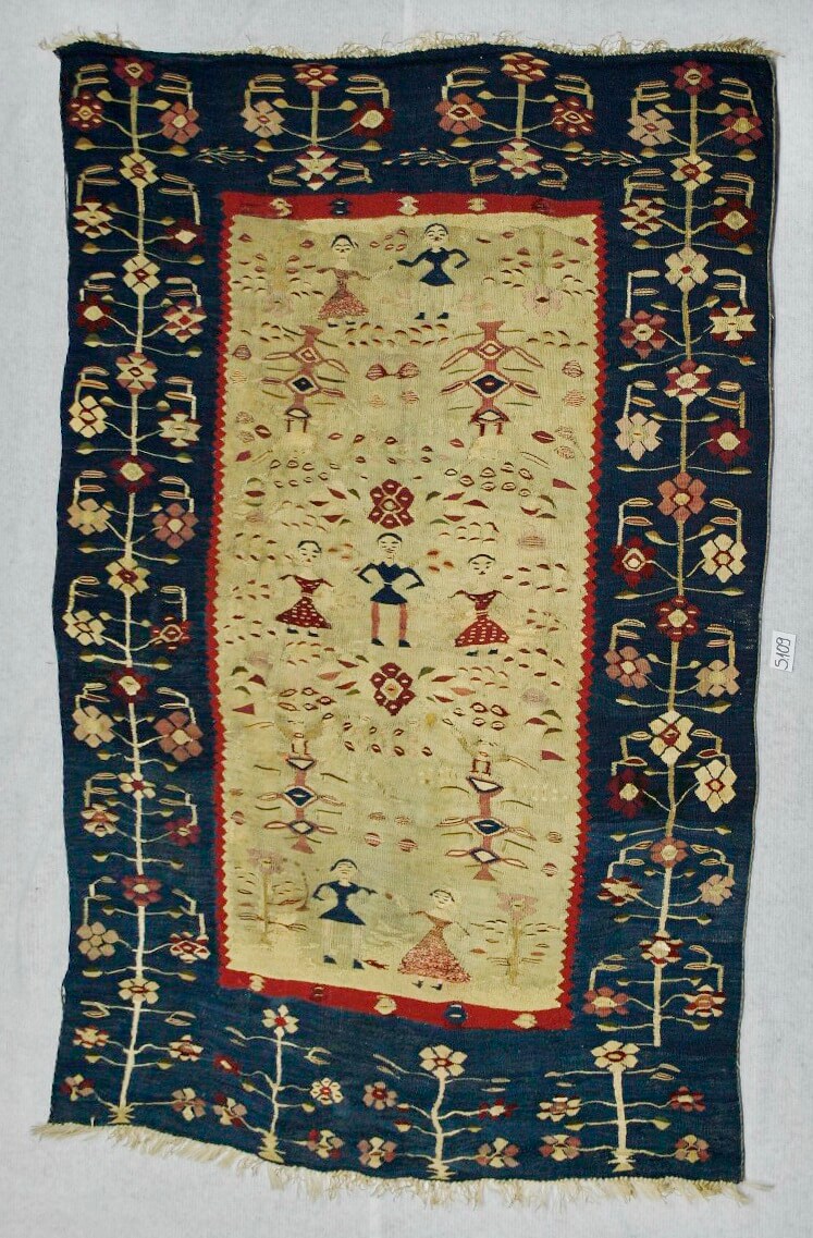 Dintre cele mai sugestive piese din colecţia muzeului, putem aminti scoarţa S 109, în care este reprezentată o scenă de bal. În centrul piesei, un tânăr este încadrat de două dansatoare. Alte două perechi, aşezate în partea superioară şi în partea inferioară a scoarţei, dau un puternic efect de perspectivă, într-un salon de dans vast.