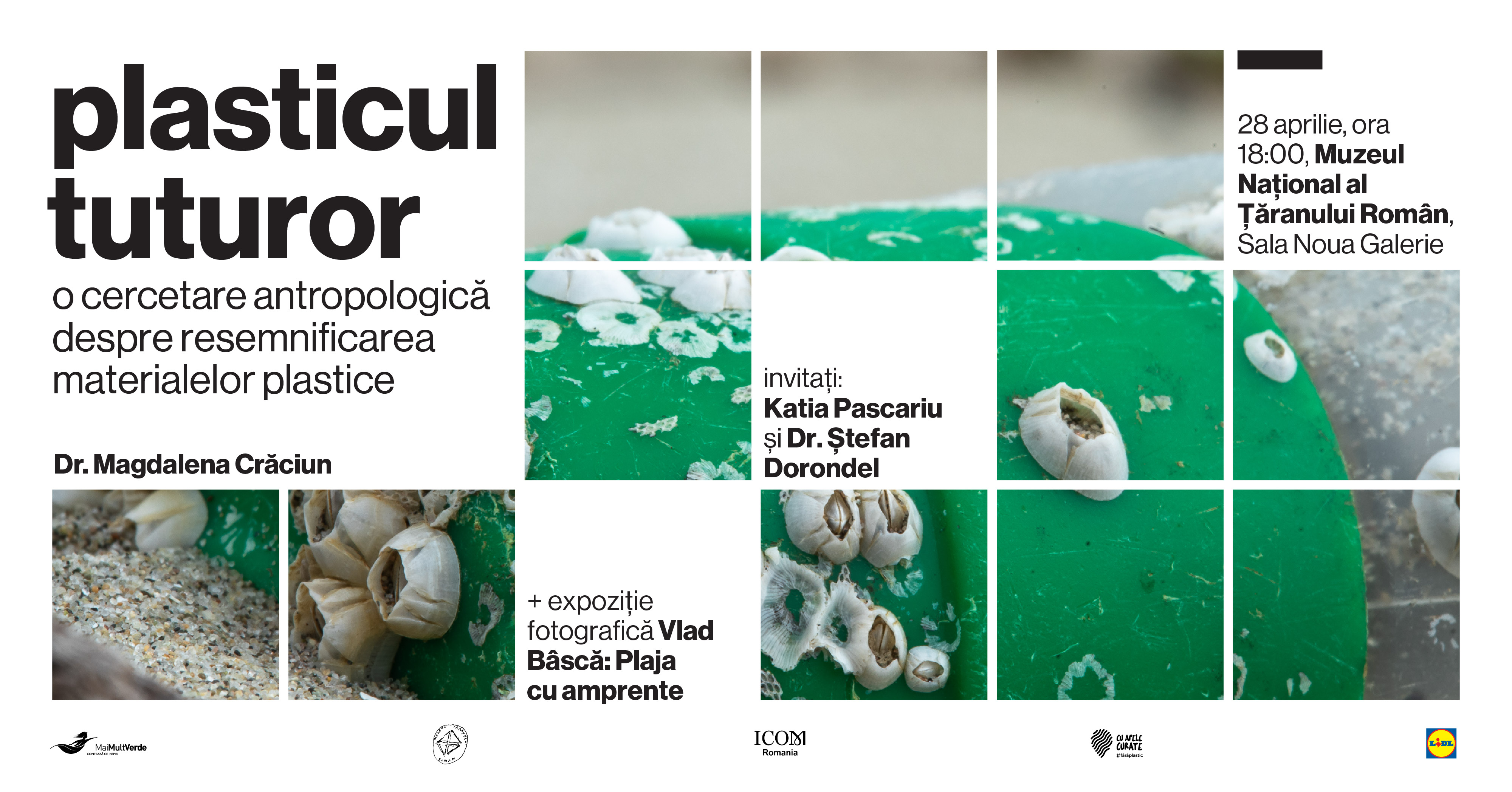 Asociația MaiMultVerde vă invită marți, 28 aprilie, începând cu ora 18:00, la Muzeul Național al Țăranului Român – Sala Noua Galerie, la prezentarea cercetării antropologice „Plasticul tuturor“, realizate de Lector univ. dr. habil. Magdalena Crăciun, despre relaționarea cu plasticul și resemnificarea acestuia în România, prin practici și inițiative culturale, artistice și comunitare.